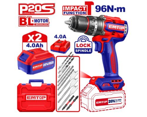 PERCEUSE A PERCUSSION BRUSH 20V +2 BAT 96NM EMTOP ECIDL20968