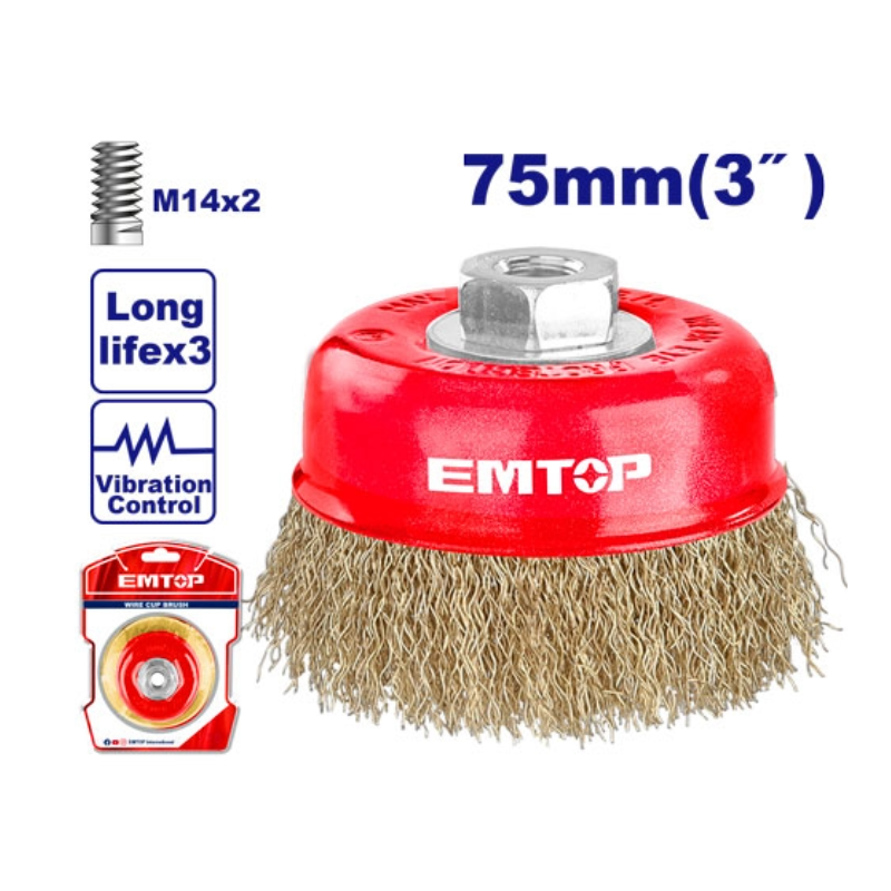 Brosse métallique Ø75 mm EMTOP EWCB10755 (8500 tr/min)