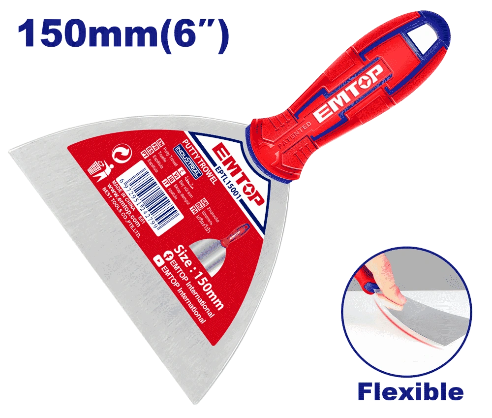 Le couteau à mastic EMTOP EPTL15001 (150 mm) est un outil essentiel pour les travaux de finition, de rénovation et de peinture. Sa lame large et flexible en acier inoxydable permet d’appliquer, lisser ou gratter le mastic, l’enduit ou la colle avec une grande précision et sans effort.