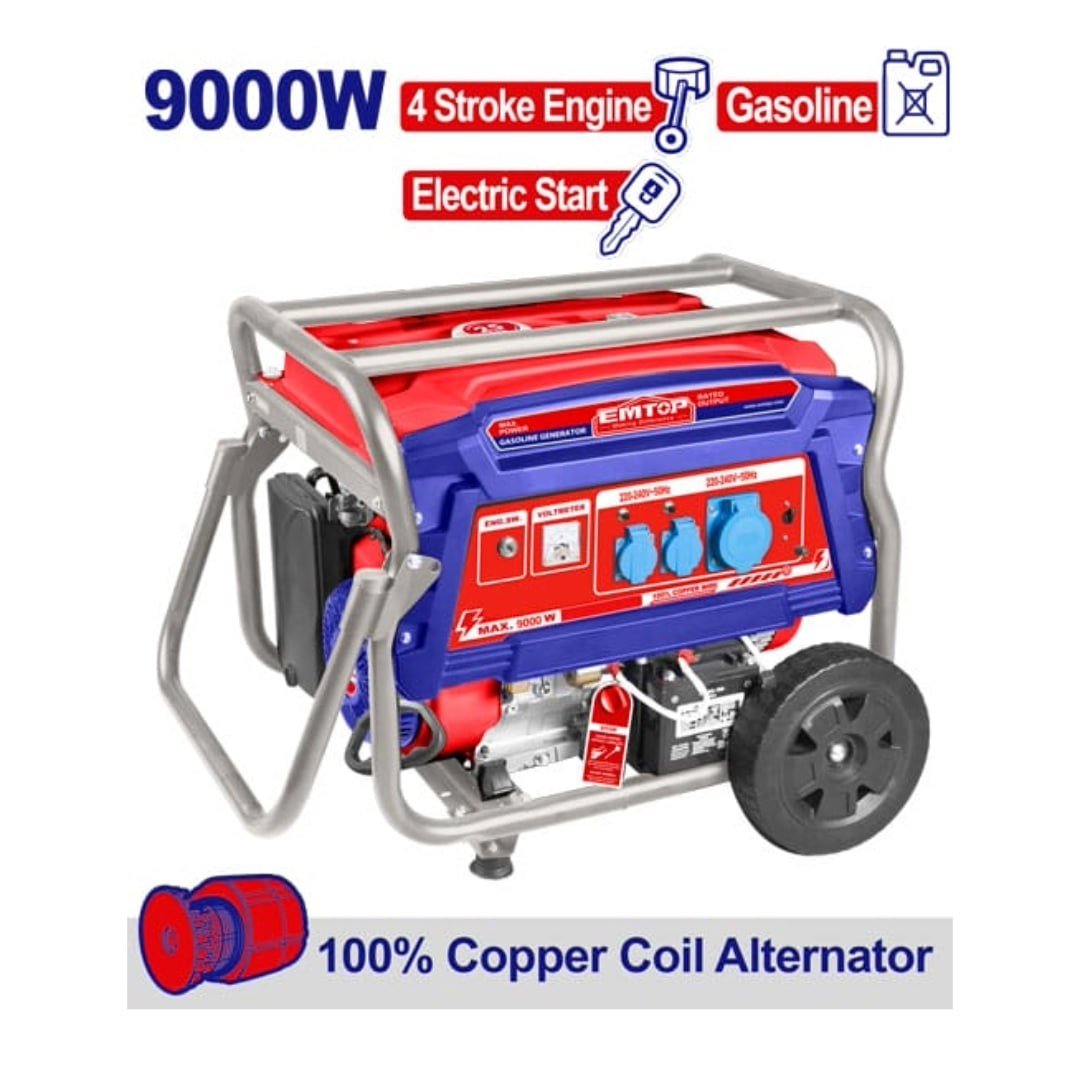 Le groupe électrogène EMTOP ESS 9 kW est conçu pour fournir une alimentation électrique fiable et continue dans les environnements professionnels et domestiques. Il délivre une puissance maximale de 9 kW et une puissance nominale de 7,5 kW avec une tension stable de 220–240 V et une fréquence de 50 Hz.