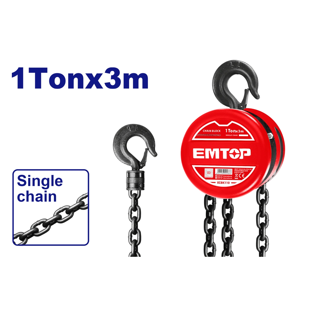Avec une hauteur de levage de 3 mètres, ce palan offre une grande flexibilité d’utilisation, que ce soit pour des travaux de montage, de maintenance ou de manutention. Sa chaîne de charge en acier trempé assure une résistance exceptionnelle à la traction et à l’usure, tandis que le mécanisme de freinage de sécurité empêche toute chute accidentelle de la charge.